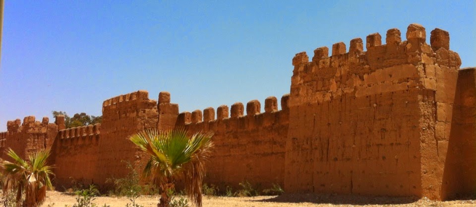 Ok , that's the introductions over with. So what have we been doing so far today?Well, we drove the grand distance of 21kms from our beautiful farm site to park up by the city walls at Taroudant. No camping tonight but an elderly" Guardian" will watch over us for the princely sum of £2. No electric hook up but power from the solar panel for lights and water pump and we always have gas available for cooking. By the way, last night's tagine meal was tender and tasty.